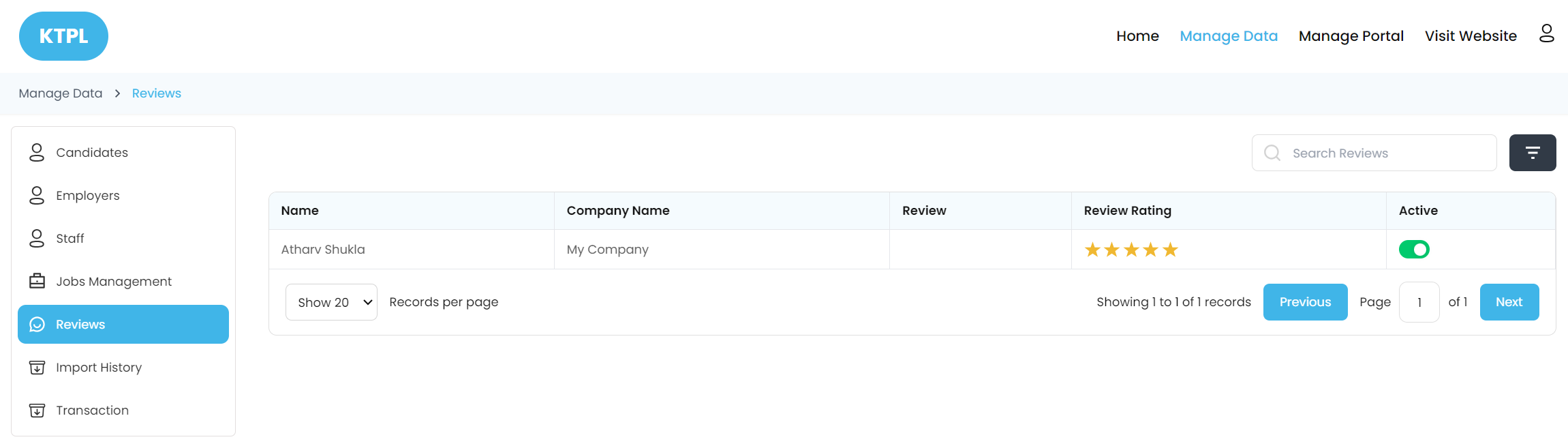 * **Active:** Using this section admin can manage the visibility of the review on the employer's profile, whether to show the review or not. If the admin disables the review, it will not display on the employer's profile.