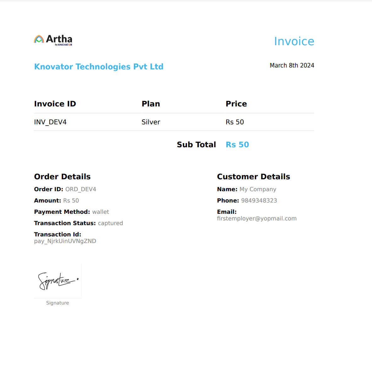A page where an admin can check all the transactions, manage invoices for transactions, and send invoices to the user.