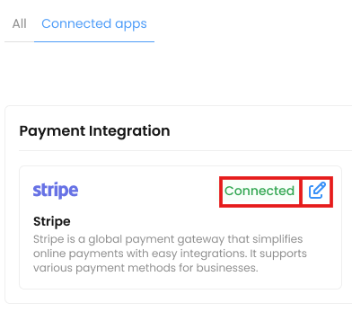 1. If the admin wants to disconnect the app, they can click on edit button on the connected apps card.