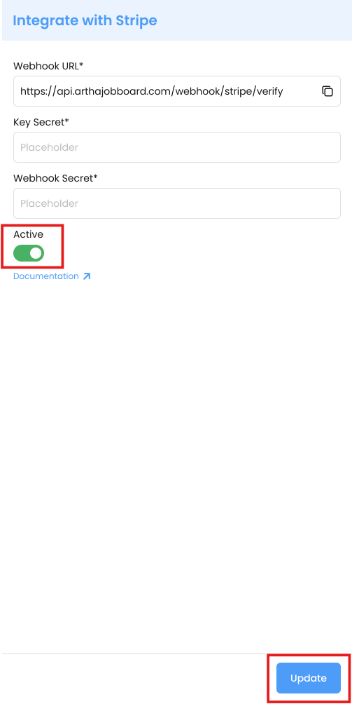 3. Upon clicking Edit Integration, a new pop-up will appear, allowing the admin to update the credentials. After making changes, the admin clicks "Update."