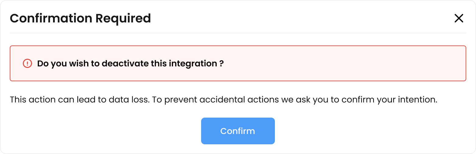 3. After clicking on update, a warning pop-up will prompt: "Do you wish to Deactivate this integration?"