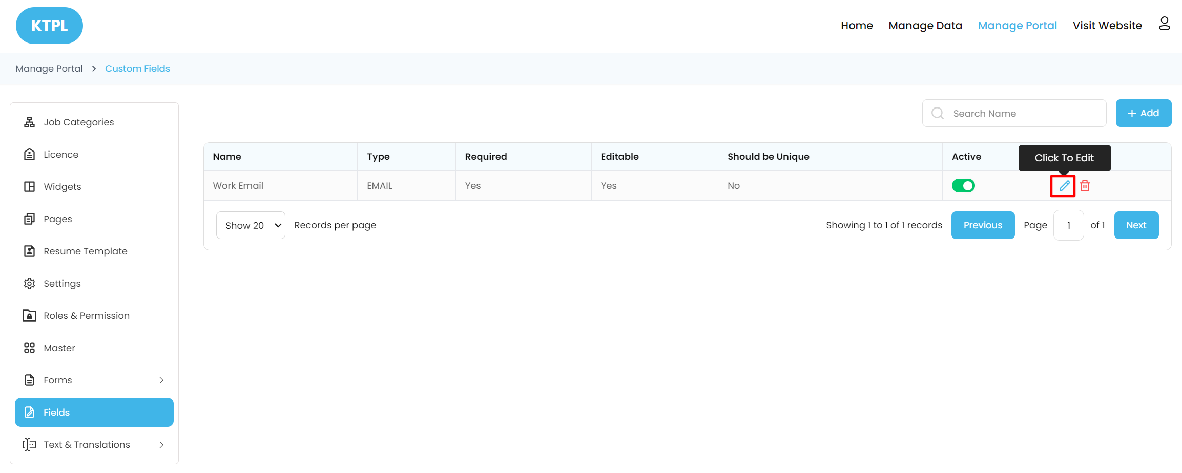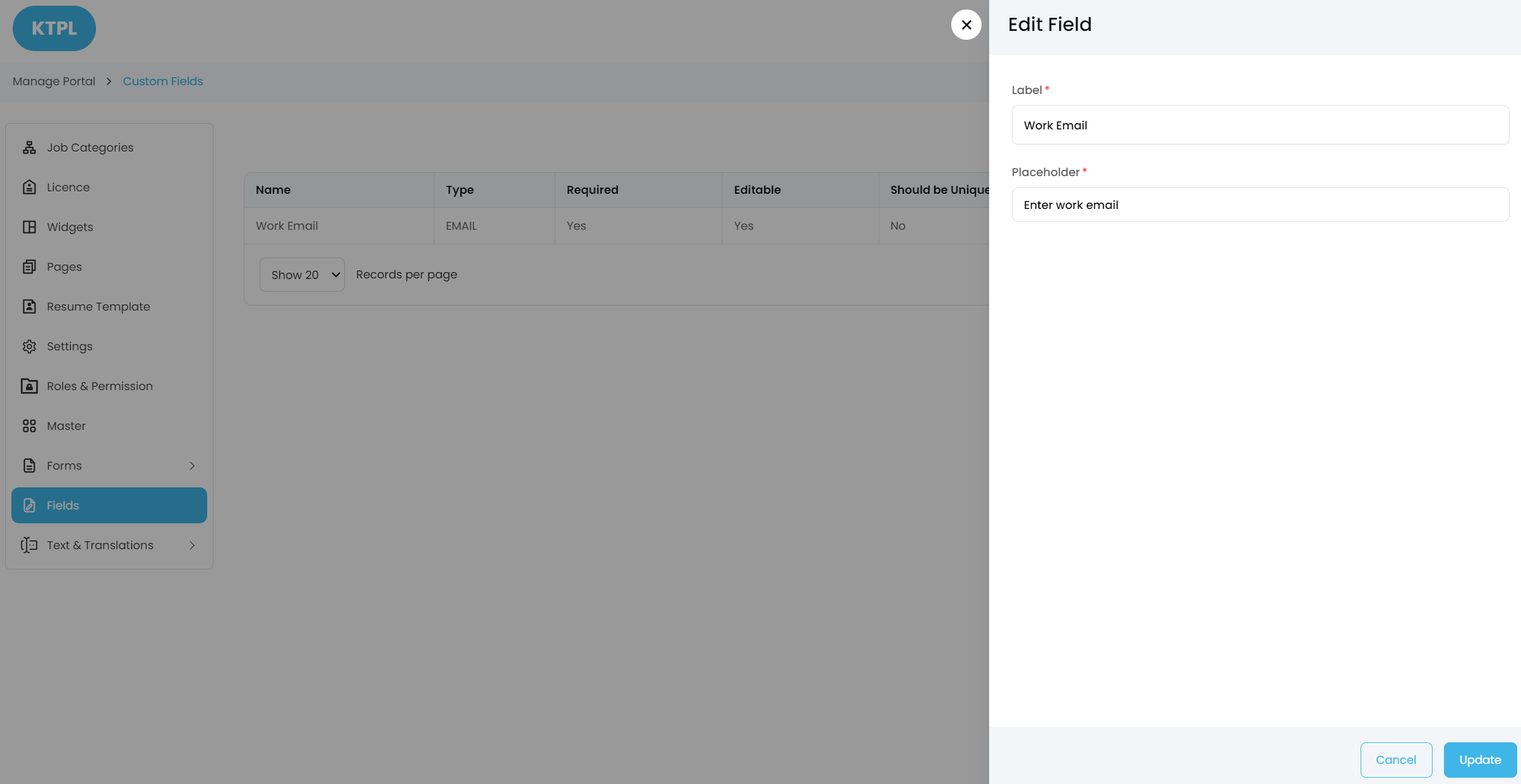 2. Any fields in the candidate signup or profile form added manually by you will be reflected here for modification.
