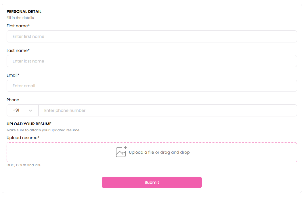 1. The candidate has to upload the resume in doc, docx and pdf format only.