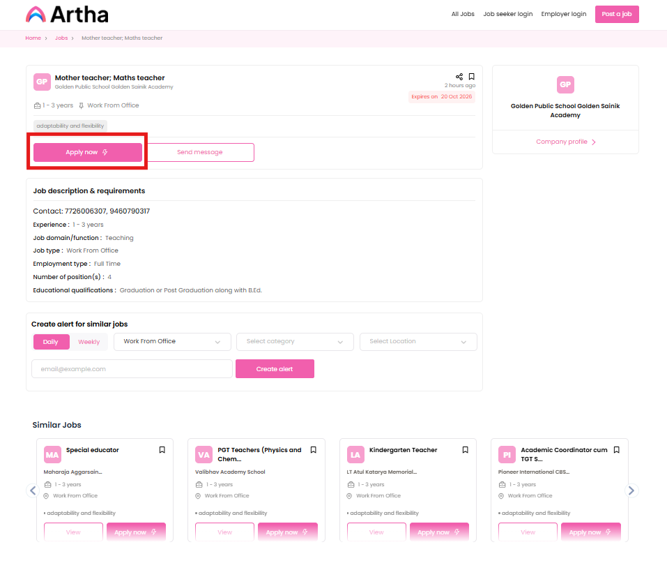 3. When the job is posted with no redirection URL, then the user applies on the platform itself.