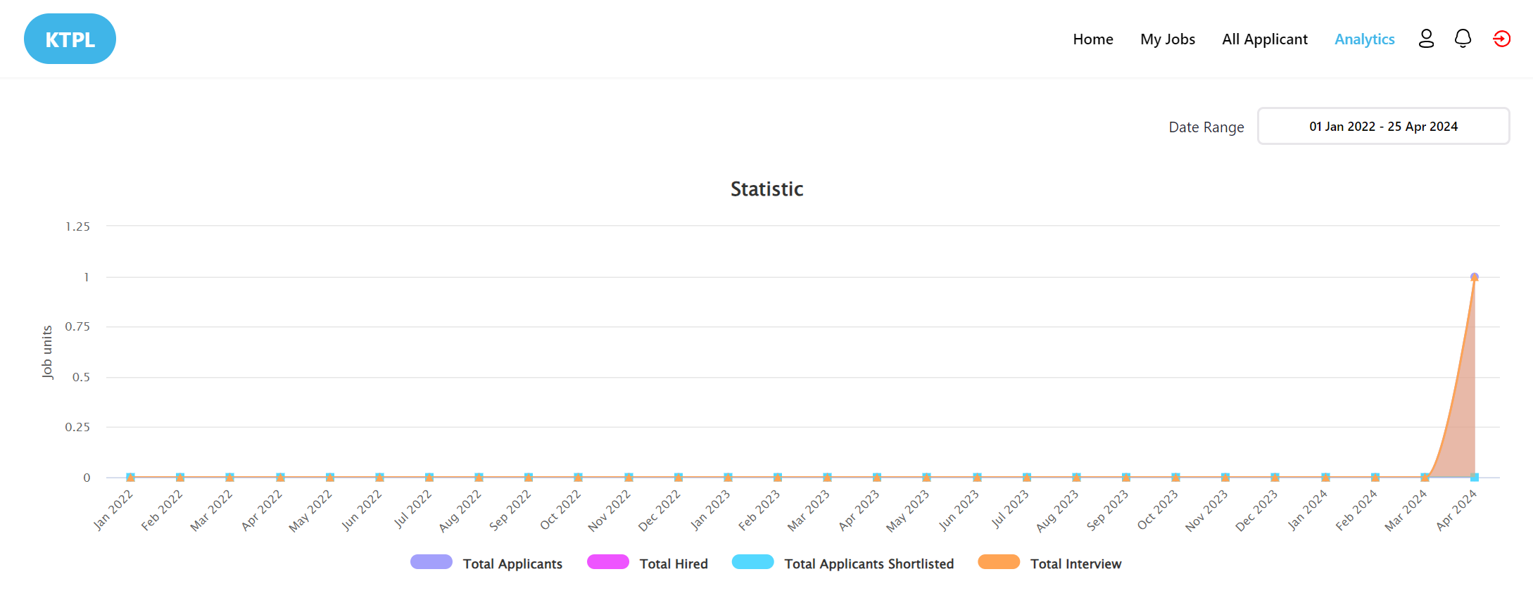3. **Total Applicants Shortlisted:** This data will show the number of applicants shortlisted who applied on job units in which month and year in graphical view.