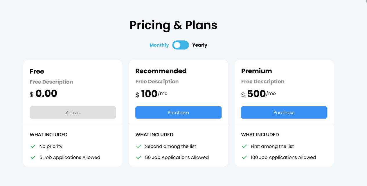 * **Premium**: This plan will have comprehensive job management with advanced AI-driven features and analytics including all features of the "Plus" plan.
